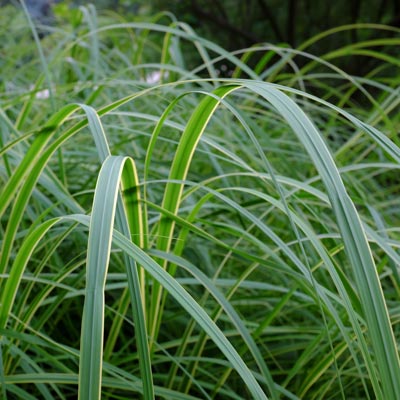 Les longues feuilles verticales panachées de la spartine agrémentent le bord des bassins en plein soleil.